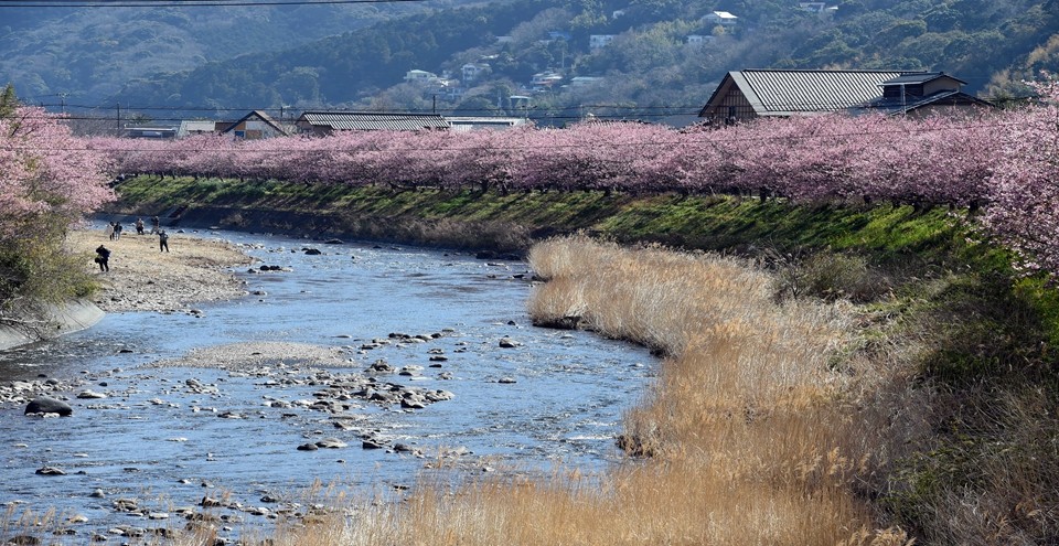 日本河津樱迎赏花佳期 800多株樱花树绵延4公里