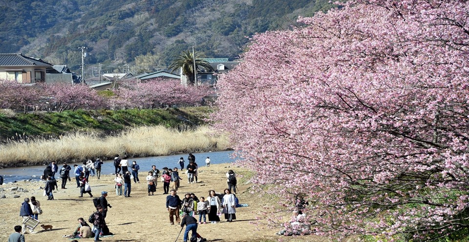 日本河津樱花祭开幕:樱花如期绽放 民众冒寒赏花