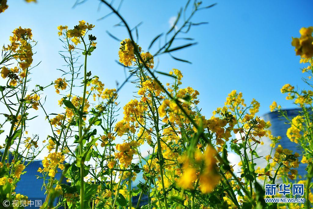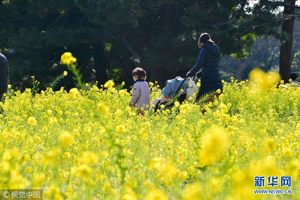 当地时间2018年03月10日,日本东京,位于东京中心区的旧浜离宫恩赐公园内,一大片缓冲池的菜花田吸引市民及游客。(图片来源:视觉中国) |