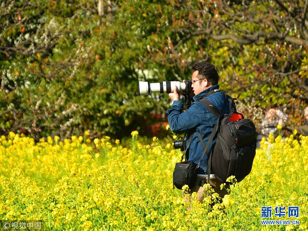 日本春暖天晴菜花飘香 吸引游客驻足留恋