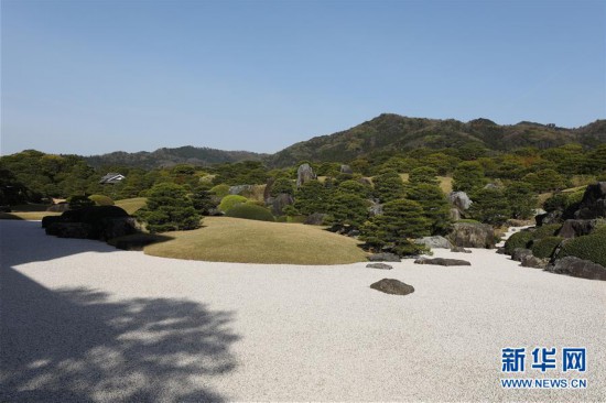 这是4月18日在日本岛根足立美术馆拍摄的日本庭院“枯山水园”区域。日本庭院多用砂石制造出流水的效果。 新华社记者 杜潇逸 摄 |